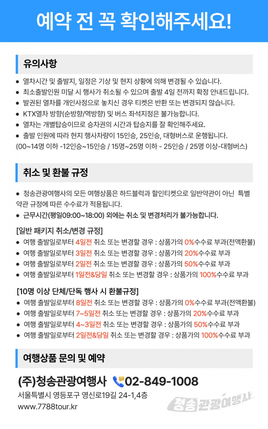 ▶청송관광여행사의 모든 여행상품은 하드블럭과 할인티켓을 사용하는 상품으로 예약 후