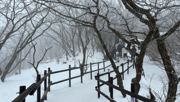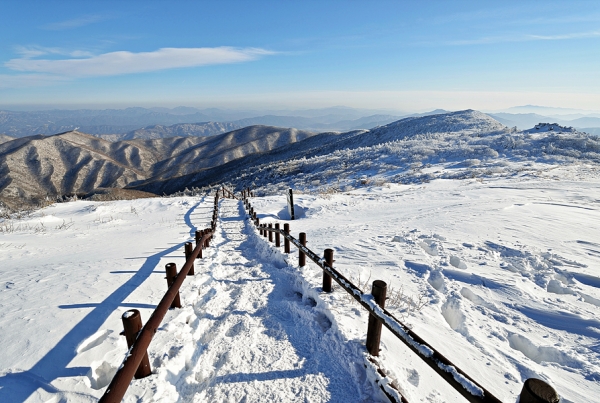 🚩무주구천동 계곡 관광 • 눈덮힌 설경~무주구천동 자연산책로와 전나무숲 눈꽃트래킹 ※주말이나 성수기 덕유산 곤도라 시간이 지연 될 경우 중식시간만 드리오니 이점 양해부탁드립니다. 🍴중식제공(산채비빔밥)