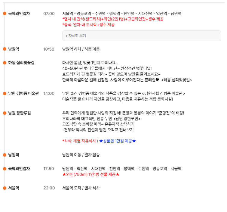 | 모이는 장소 | 출발 20분전 해당역 개별탑승 |