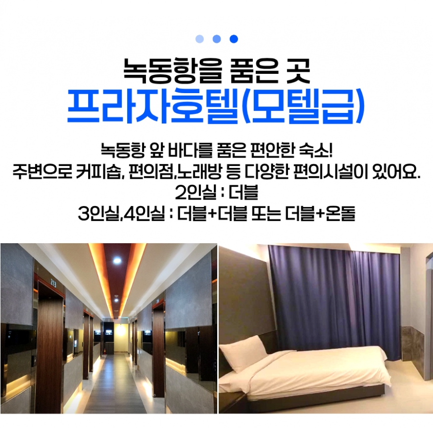 숙소(프라자호텔-모텔급) 이동 후 자유시간 2인실 : 더블 3인실, 4인실 : 온돌 또는 침대 (선택불가) |