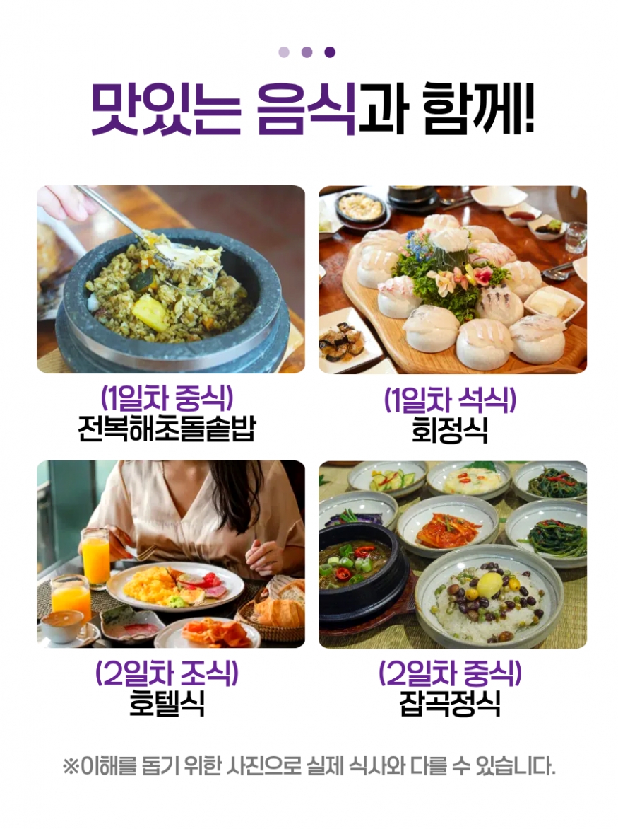 KTX왕복열차비, 연계차량비, 숙식비(1박 4식), 입장료(퍼플섬) |